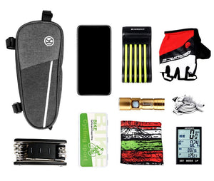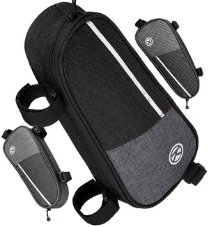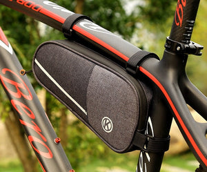 F44 velosipēda rāmja soma ir izgatavota no augstas kvalitātes materiāliem, nodrošinot izturību un uzticamību.