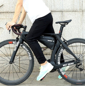 Šī velosipēda soma ir izgatavota no mitrumizturīga materiāla, kas nodrošina izturību un uzticamību. Angļu uzraksts "West bikin" priekšpusē piešķir tai stilīgu izskatu.