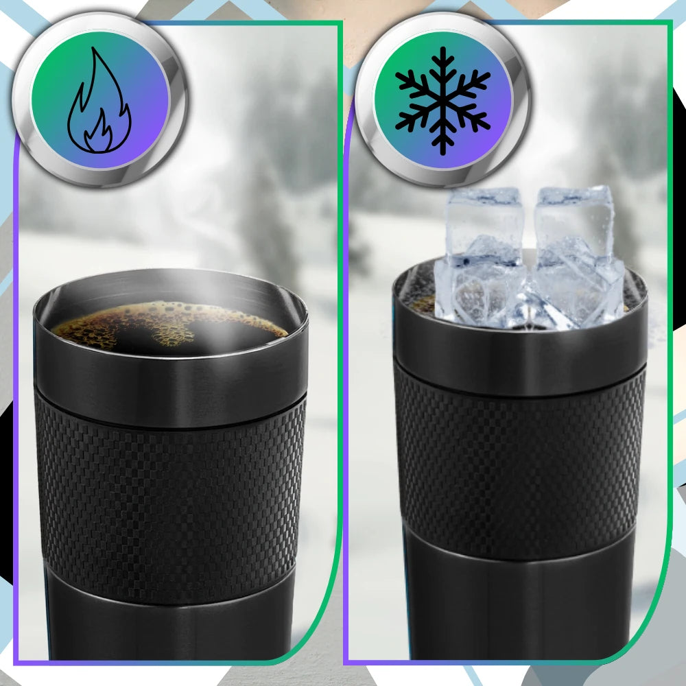 - **Patērētāja priekšrocības**: Lieliski uztur dzērienu temperatūru gan aukstiem, gan karstiem. Ērti lietojams, pateicoties ergonomiskajam dizainam un neslīdošam pārklājumam. Nav piemērots mazgāšanai trauku mazgājamā mašīnā.