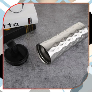 - **Materiāls un izmēri**: Izgatavots no augstas kvalitātes nerūsējošā tērauda un izturīgas plastmasas. Tilpums: 500 ml. Augstums: 21 cm. Diametrs: 6,5 cm.