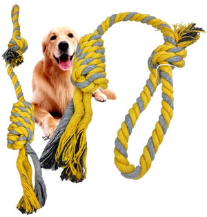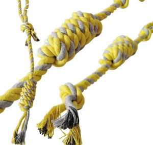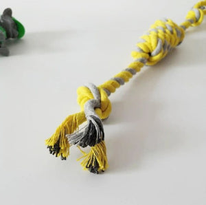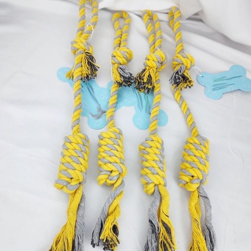 Šī suņu virves rotaļlieta, kas izgatavota no blīvi austas kokvilnas, ir lieliska izvēle jūsu mīlulim. Šī rotaļlieta ne tikai nodrošina izklaidi, bet arī palīdz uzturēt jūsu suņa zobu higiēnu.