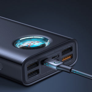 Baseus Amblight ir ārējs akumulators ar milzīgu 30000mAh ietilpību, nedaudz futūristisku dizainu un vairākām pieslēgvietām, kas ļauj uzlādēt pat vairākas ierīces vienlaikus (ieskaitot klēpjdatorus). Lielisks sabiedrotais mobilajam aprīkojumam dažādu ceļojumu, kempinga vai citu izbraucienu laikā.