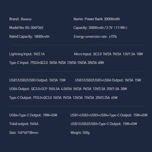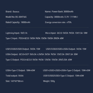 Baseus Amblight ārējais akumulators 65W 30000mAh Overseas Edition melns (PPLG000101)