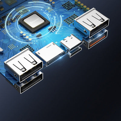 Ierīcei ir pat 7 porti! 3 no tiem ir paredzēti piederuma uzlādēšanai (micro USB, Lightning, USB-C PD) un 5 mobilo ierīču uzlādēšanai (3x USB 2.0, USB QC, USB-C PD). Un tā nav kļūda. USB Type-C savienotāju var izmantot, lai uzlādētu viedtālruni, klēpjdatoru vai bezvadu skaļruni, kā arī pašu ārējo akumulatoru.