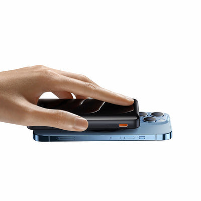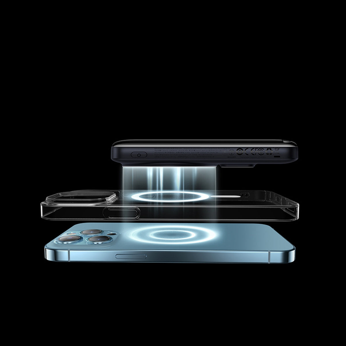 Baseus Magnetic Mount ir 10000mAh ārējais akumulators ar MagSafe bezvadu uzlādi, kas nodrošina ātru bezvadu uzlādi līdz 20W.
