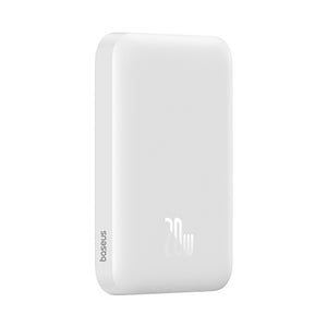 Baseus Magnetic Mini Air PPCXM06A MagSafe / Qi 6000mAh 20W induktīvais ārējais akumulators + 60W USB-C kabelis 0.3m - balts