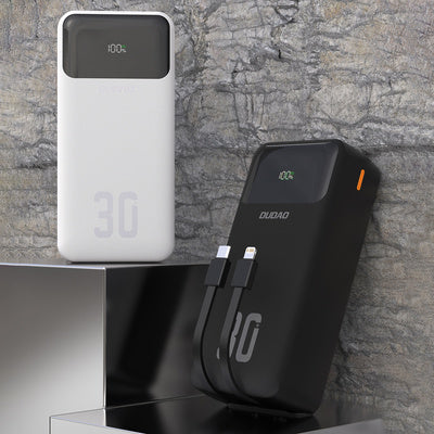Dudao K15MAX 30000mAh pārnēsājamais akumulators ir īsts mobilo ierīču uzlādes spēka agregāts. Šis baltais, modernais pārnēsājamais akumulators ir aprīkots ar PD un QC ātrās uzlādes tehnoloģiju, padarot to par neaizstājamu ceļabiedru ceļojumos, darbā vai ikdienas lietošanā. Iespaidīgā 30000mAh ietilpība ļauj vairākas reizes uzlādēt viedtālruni, un 5 izejas porti, tostarp integrēti USB-C un Lightning kabeļi, nodrošina saderību ar lielāko daļu ierīču. Izturīgā konstrukcija, pārdomātais dizains un baltā krāsa nodrošina eleganci un funkcionalitāti. Ierīce atbalsta ātro uzlādi līdz 22,5 W un vairāku ierīču uzlādi vienlaikus. Šis ir lielisks risinājums cilvēkiem, kuri sagaida uzticamību un augstu efektivitāti.
