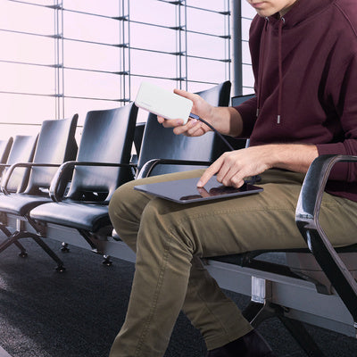 - To var ņemt līdzi lidmašīnā . Tā ietilpība ir 10 000 mAh, ko apstiprina lielākā daļa aviokompāniju.