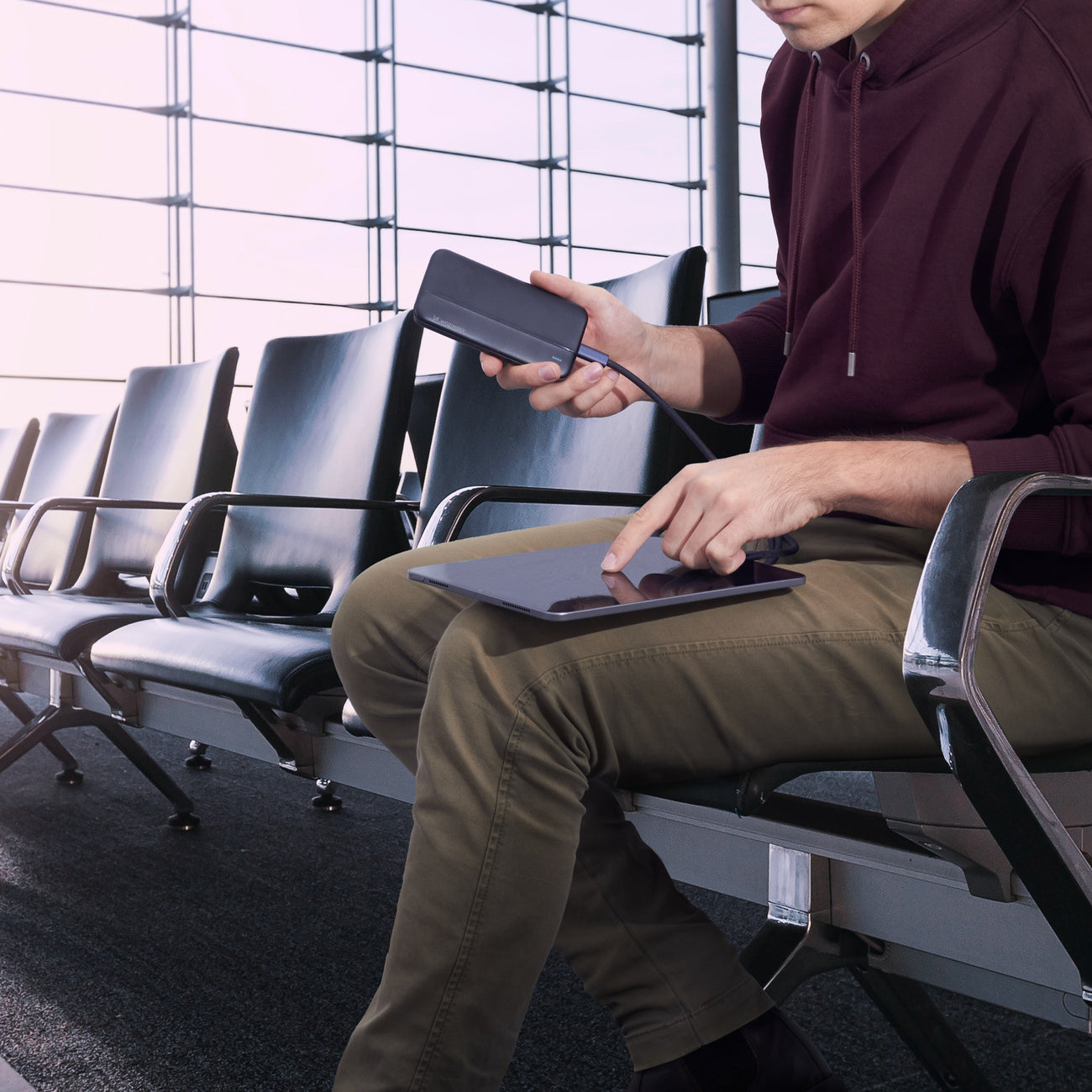 - To var ņemt līdzi lidmašīnā . Tā ietilpība ir 10 000 mAh, ko apstiprina lielākā daļa aviokompāniju.