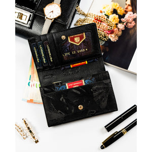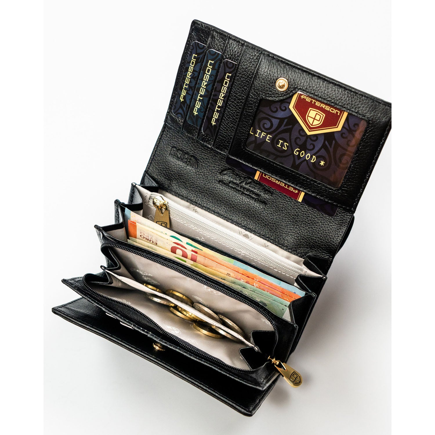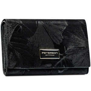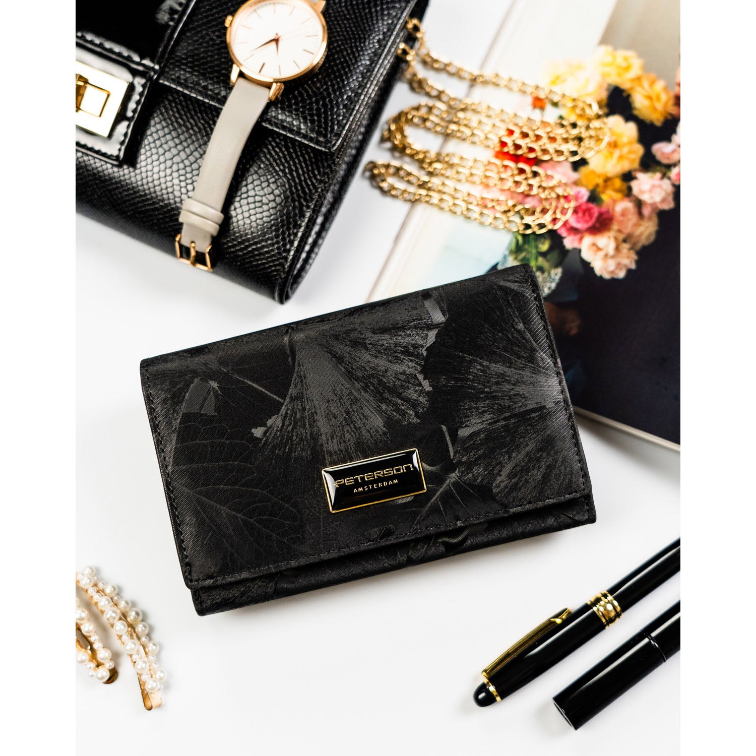 Peterson sieviešu maks, izgatavots no mākslīgās ādas, melns, ar aizdari.