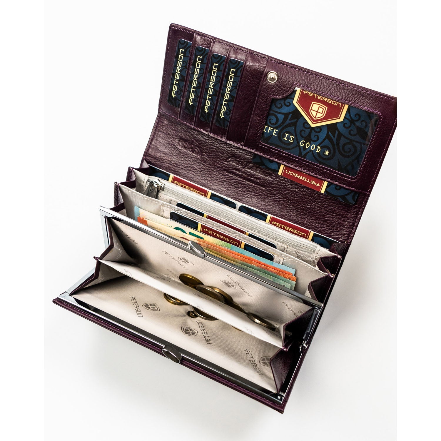 Peterson sieviešu rokassoma no mākslīgās ādas, violetā krāsā, ar RFID aizsardzību.