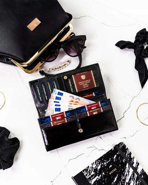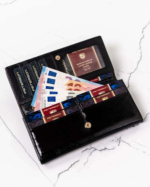 Šis elegantais sieviešu maks, kas izgatavots no īstas lakotas ādas, ir lieliska izvēle tiem, kas meklē stilu un drošību. Maks ir aprīkots ar uzlabotu RFID bloķēšanas sistēmu, kas aizsargā jūsu kartes un dokumentus no neatļautas datu skenēšanas.