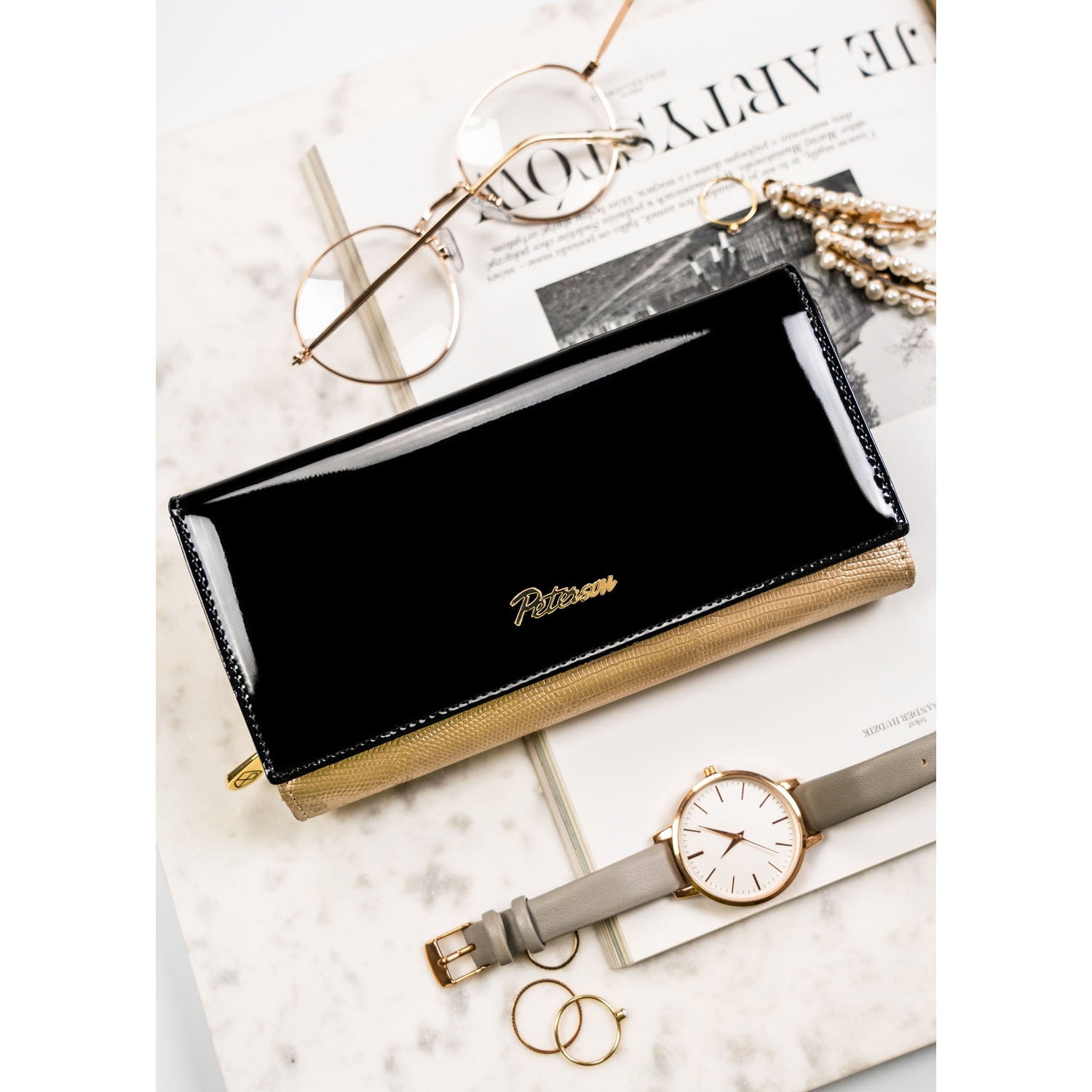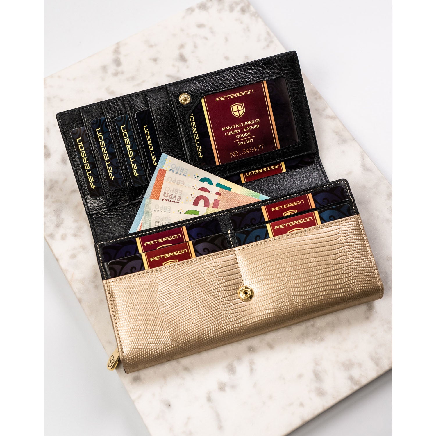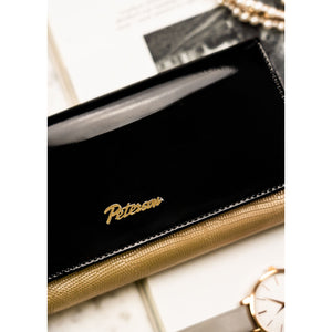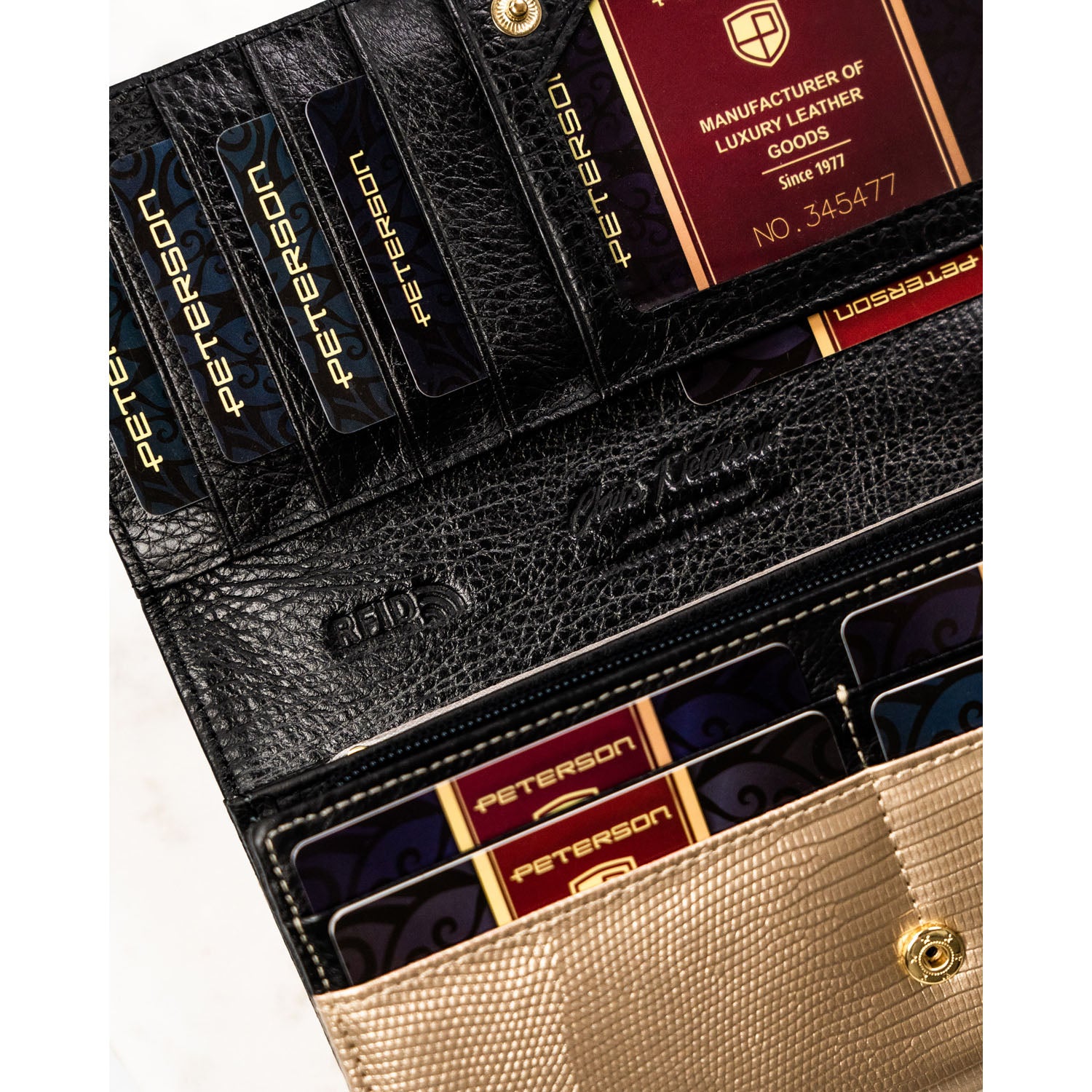 Sieviešu maks, melni zelta krāsā, īsta āda, RFID sistēma D1635