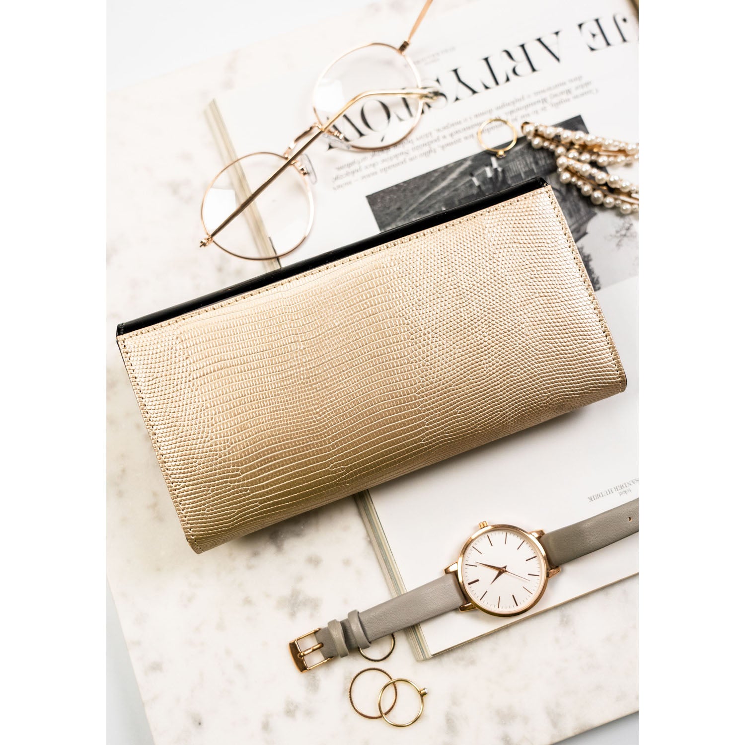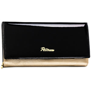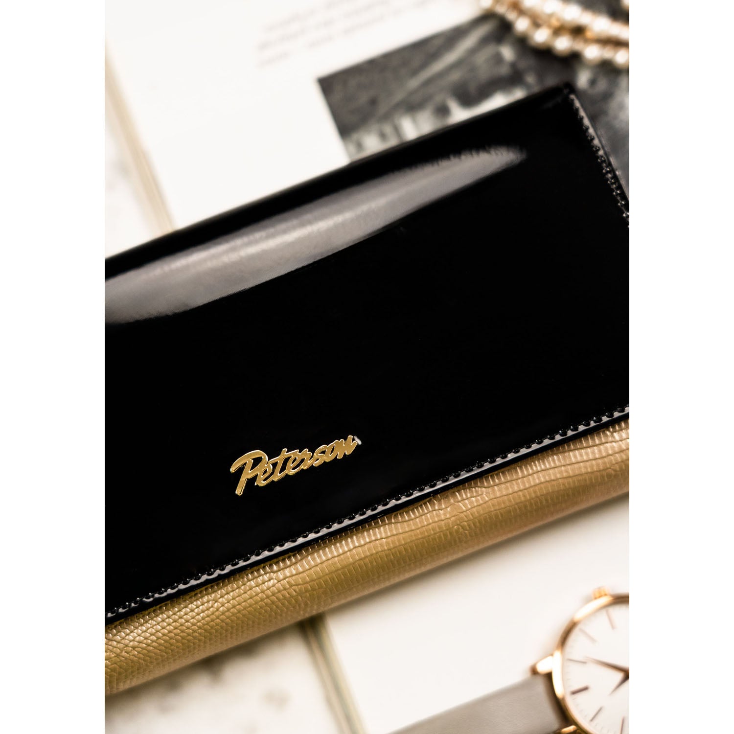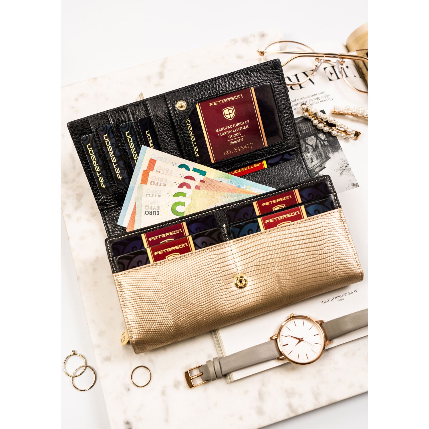 Sieviešu maks, melni zelta krāsā, īsta āda, RFID sistēma D1635