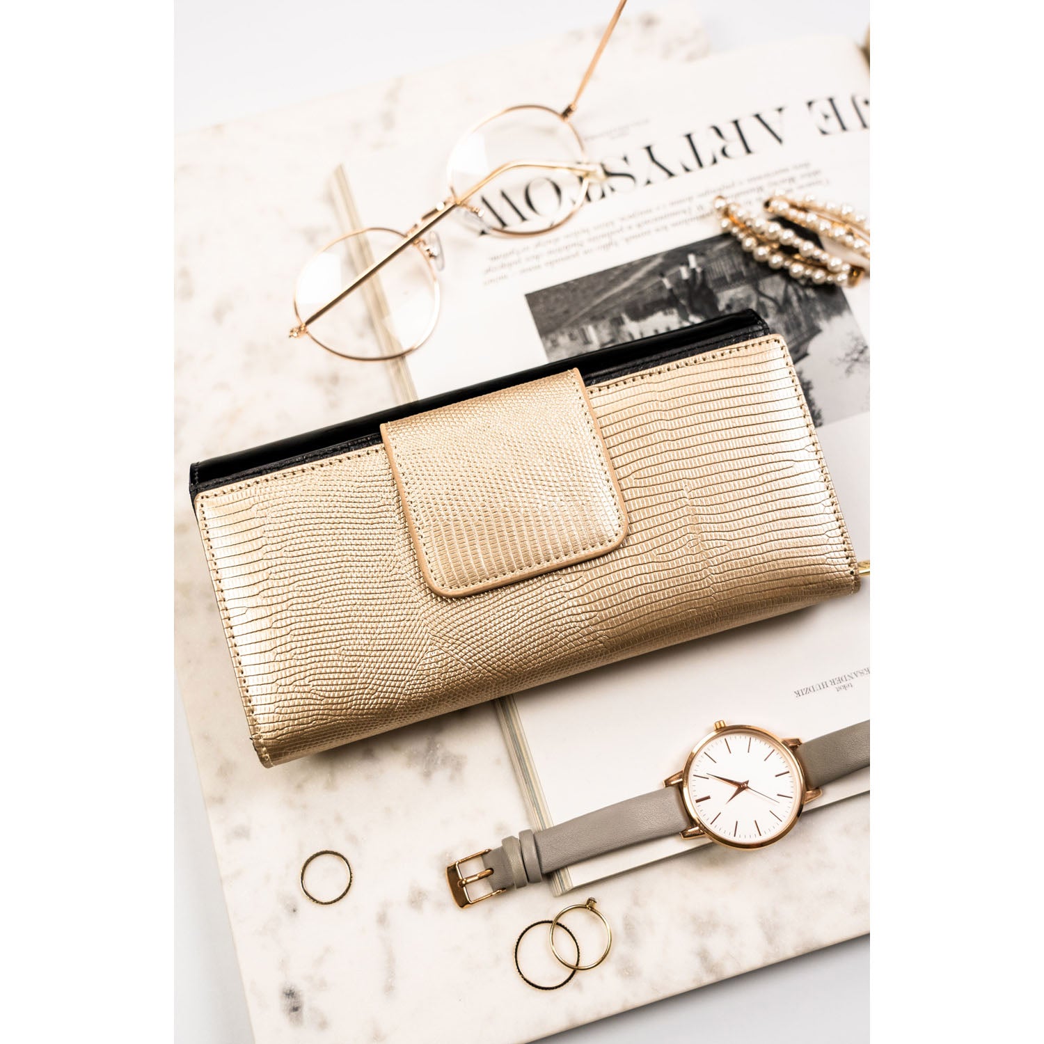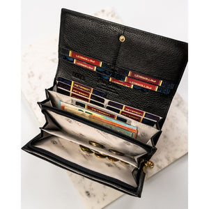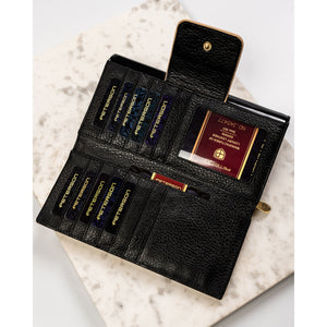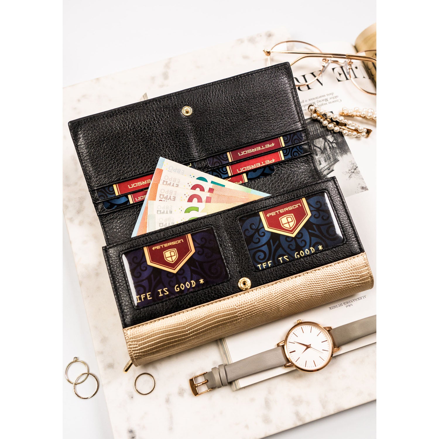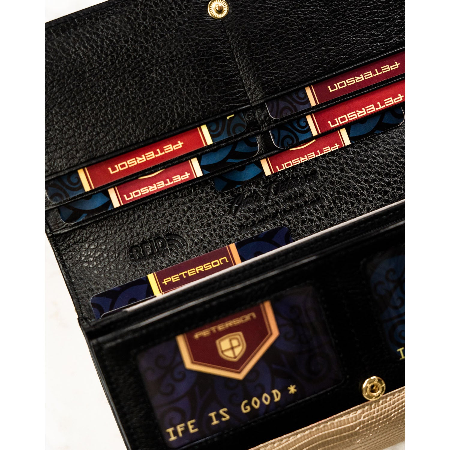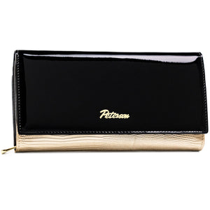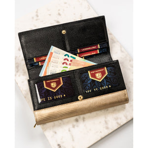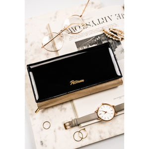 Sieviešu maks, melni zelta krāsā, īsta āda, RFID sistēma
