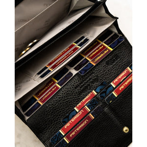 Šis maks ne tikai piešķir stilu, bet arī droši pasargā jūsu kartes, pateicoties iebūvētajai RFID aizsardzībai. Vairāk nekā 20 karšu nodalījumi un kabata monētām ar rāvējslēdzēju ļauj ērti sakārtot visas nepieciešamās lietas. Komplektā ietilpst eleganta kastīte, kas padara to par lielisku dāvanu.