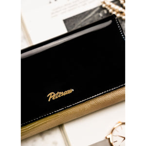 Sieviešu maks, melni zelta krāsā, īsta āda, RFID sistēma D1636