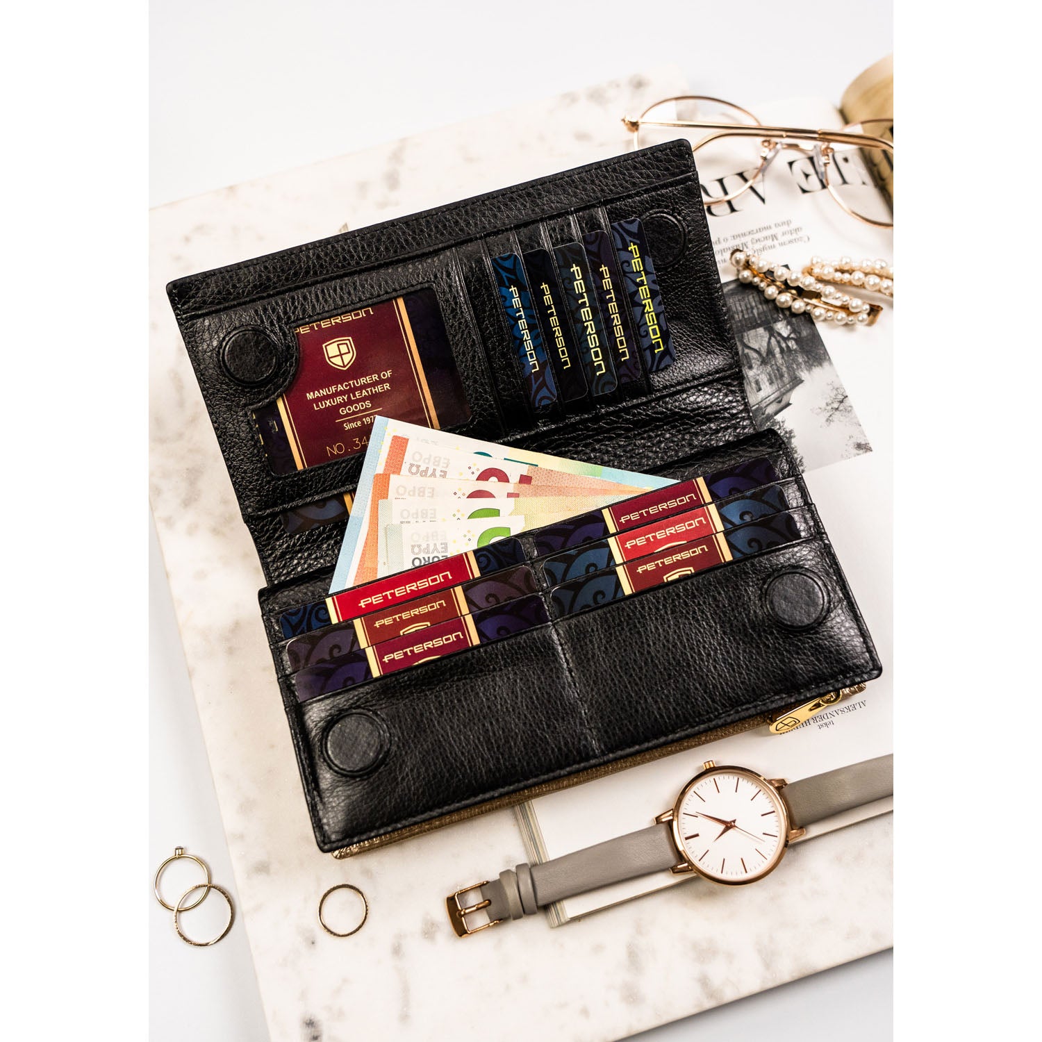 Šis elegantais sieviešu maks no Peterson ir lieliska izvēle pilsētvides stila cienītājām. Izgatavots no augstas kvalitātes īstas un lakotas ādas, tam ir raksturīgs čūskādas un krokodila raksts.