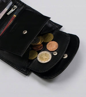 Šis elegantais sieviešu maks no Peterson ir izgatavots no augstas kvalitātes īstas ādas, kas nodrošina izturību un stilīgu izskatu. Melnā krāsa piešķir tam klasisku un daudzpusīgu izskatu, kas piemērots jebkuram gadījumam.