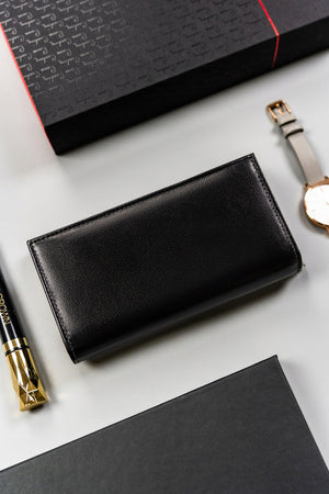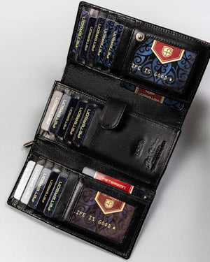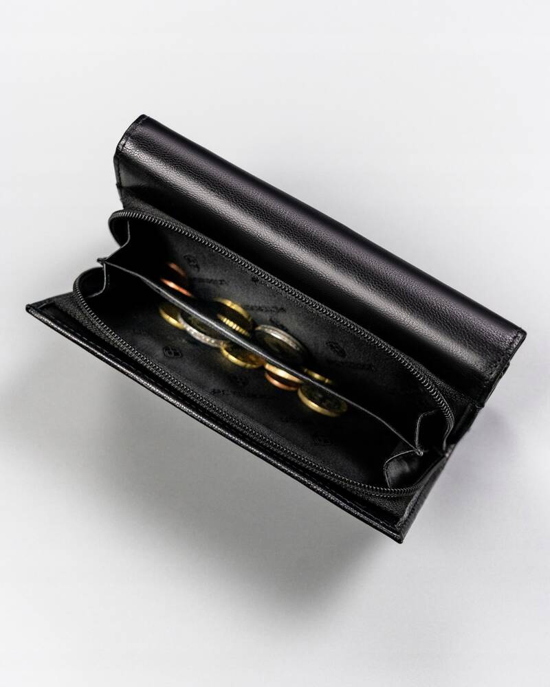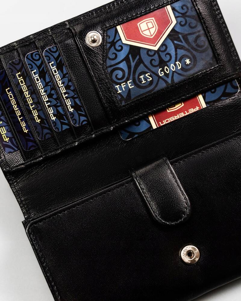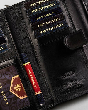 Šis elegantais sieviešu maks no Peterson kolekcijas ir izgatavots no augstas kvalitātes īstas ādas, nodrošinot izturību un stilīgu izskatu. Melnais dizains nodrošina klasisku un daudzpusīgu izskatu, kas piemērots jebkuram gadījumam.