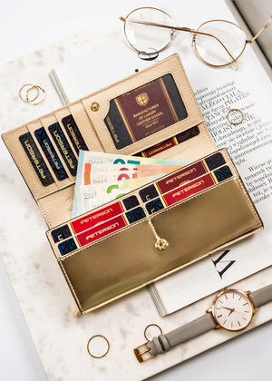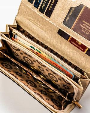 Šis elegantais sieviešu maks no Peterson kolekcijas ir izgatavots no augstas kvalitātes īstas un lakotas ādas. Melnā krāsa nodrošina klasisku un daudzpusīgu stilu, kas piemērots dažādiem gadījumiem. Lielais izmērs nodrošina, ka jums būs pietiekami daudz vietas visām jūsu kartēm un skaidrai naudai. Turklāt RFID aizsardzība palīdzēs aizsargāt jūsu personas datus no neatļautas skenēšanas. Šī ir lieliska izvēle sievietēm, kuras novērtē kvalitāti un drošību.