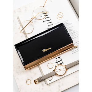 Šis elegantais sieviešu maks no Peterson kolekcijas ir izgatavots no augstas kvalitātes īstas un lakotas ādas. Melnā krāsa nodrošina klasisku un daudzpusīgu stilu, kas piemērots dažādiem gadījumiem. Makam ir liels izmērs, tāpēc tajā ērti ietilps visas jūsu kartes un skaidra nauda. Turklāt RFID aizsardzība nodrošina jūsu personas datu drošību. Ar 6-10 karšu nodalījumiem šis maks ir praktiska un stilīga izvēle ikvienai sievietei.