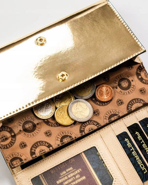 Šis elegantais sieviešu maks no Peterson kolekcijas ir izgatavots no augstas kvalitātes dabīgas lakotas ādas, kas piešķir greznības un izturības sajūtu.