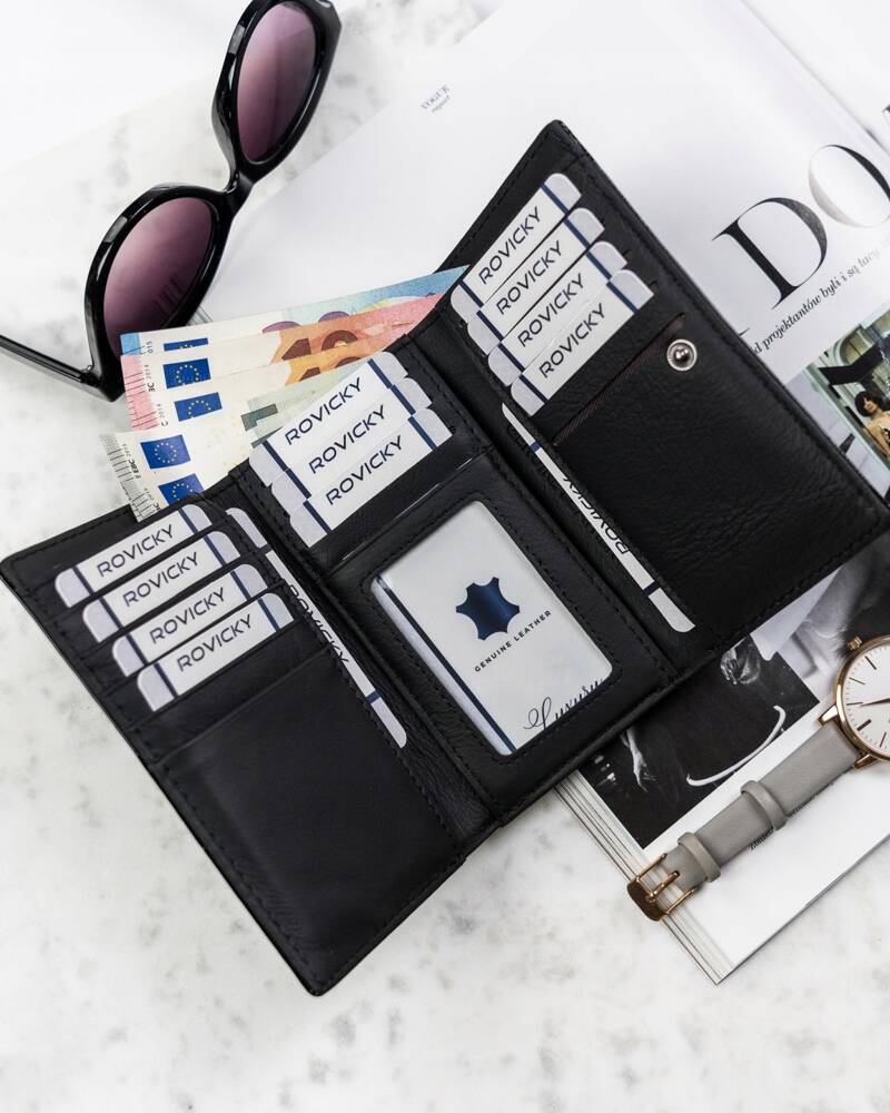 Elegants un funkcionāls sieviešu maks no 4U Cavaldi, izgatavots no augstas kvalitātes īstas ādas. Šis melnais maks ir lieliski piemērots gan ikdienas lietošanai, gan īpašiem gadījumiem.