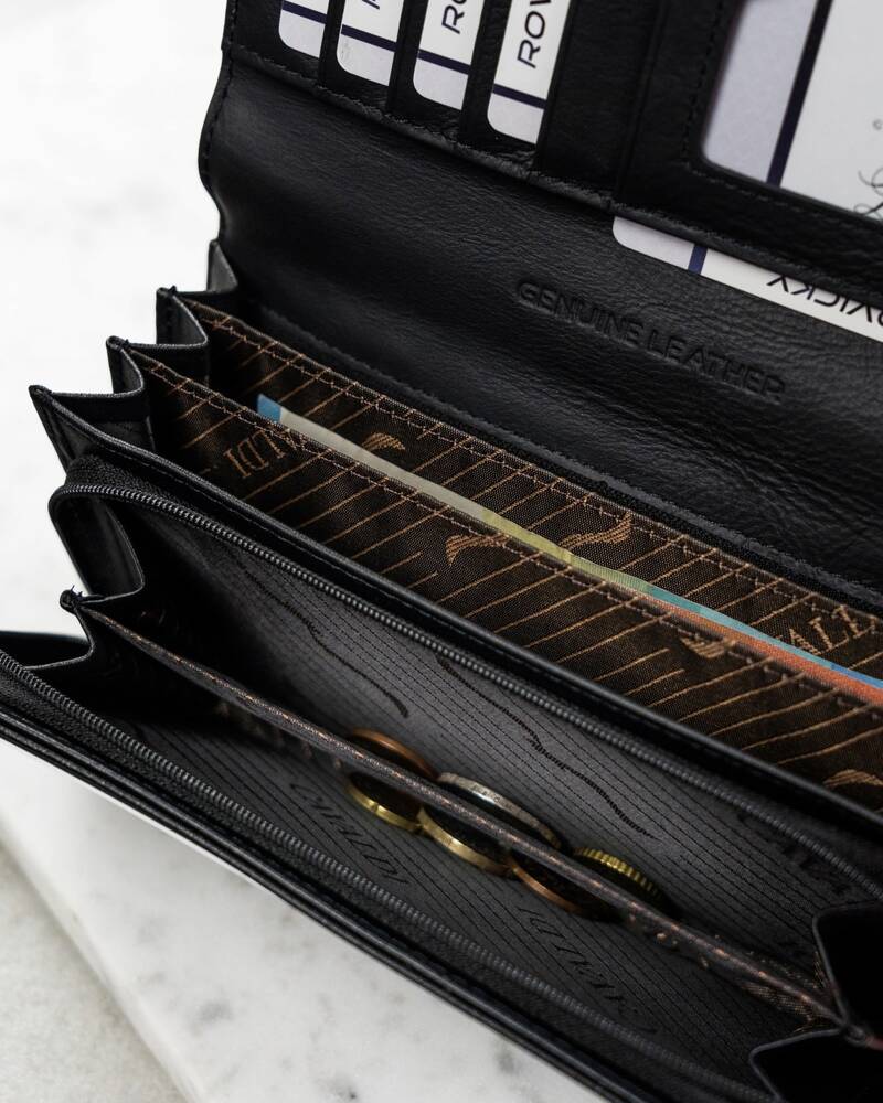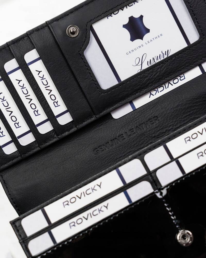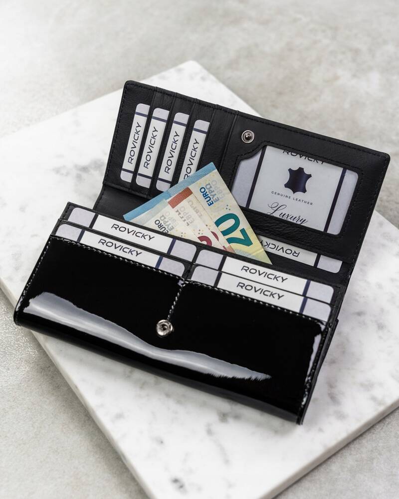 Šis elegantais sieviešu maks no 4U Cavaldi ir izgatavots no augstas kvalitātes īstas un lakotas ādas. Melnā krāsa nodrošina klasisku un daudzpusīgu stilu, kas piemērots dažādiem gadījumiem. Lielais izmērs nodrošina, ka jums būs pietiekami daudz vietas visām jūsu mantām, un RFID aizsardzība palīdzēs aizsargāt jūsu kartes no neatļautas skenēšanas. Makam ir 6-10 karšu nodalījumi un atsevišķs nodalījums monētām, tāpēc viss būs kārtīgi sakārtots.