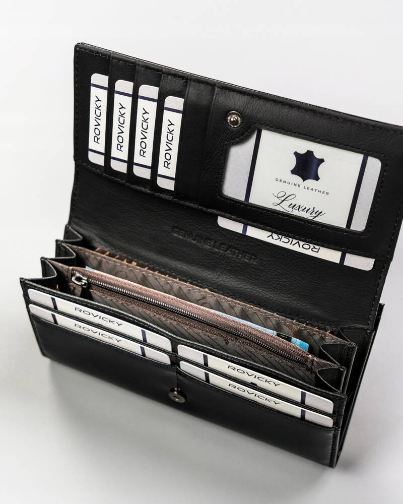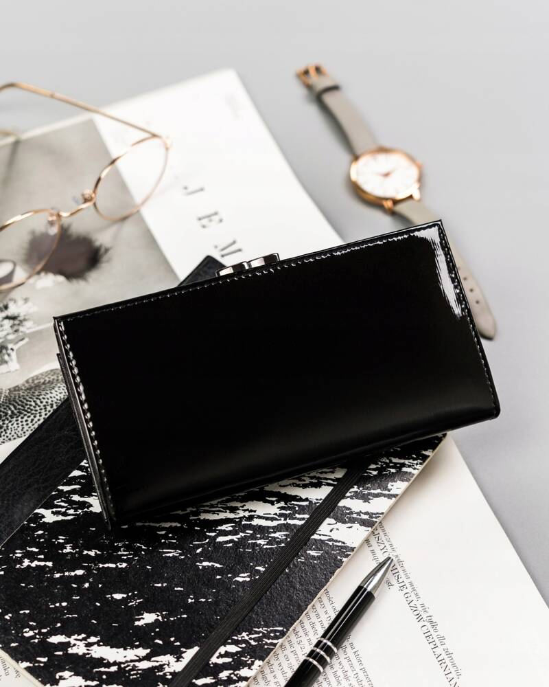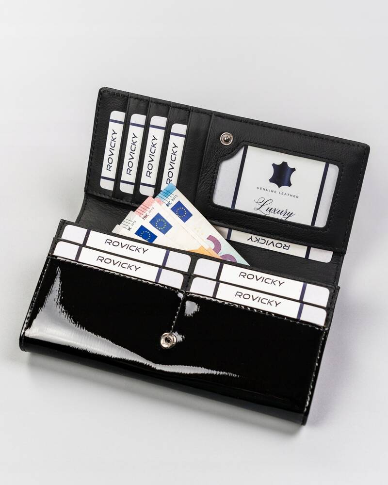 Šis elegantais melnais maks no 4U Cavaldi ir izgatavots no īstas un lakotas ādas, kas tam piešķir greznu un izturīgu dizainu. Lielais izmērs nodrošina pietiekami daudz vietas visām jūsu kartēm un monētām.