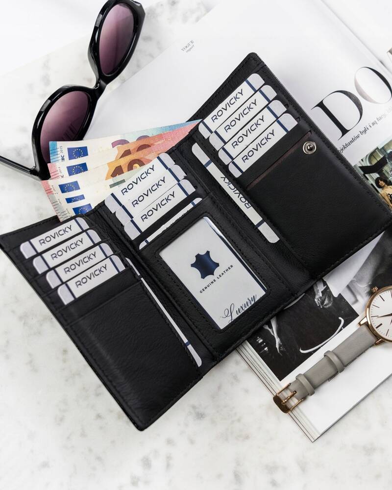 Šis elegantais sieviešu maks no 4U Cavaldi ir izgatavots no augstas kvalitātes īstas un lakotas ādas. Melnā krāsa nodrošina klasisku un daudzpusīgu stilu, bet vidējais izmērs nodrošina ērtības ikdienas lietošanai. Lai gan makam nav RFID aizsardzības, tas piedāvā vairāk nekā 10 karšu nodalījumus un atsevišķu nodalījumu monētām, padarot to praktisku un funkcionālu.