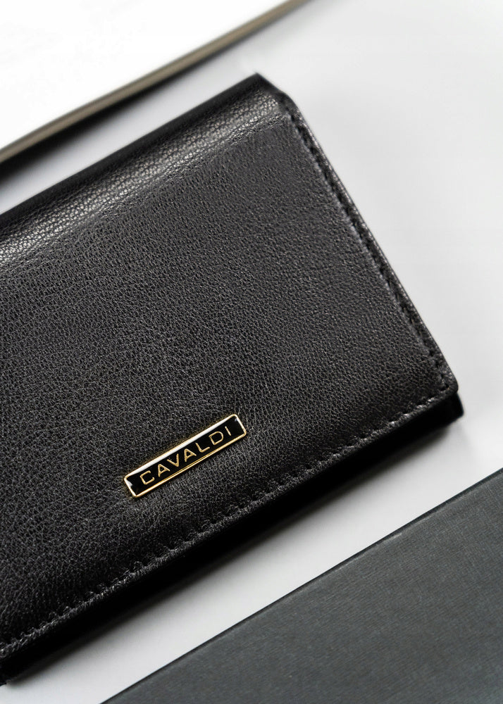 Elegants un funkcionāls sieviešu maks no 4U CAVALDI , izgatavots no augstas kvalitātes īstas ādas. Šis melnais maks ir lieliski piemērots gan ikdienas lietošanai, gan īpašiem gadījumiem.