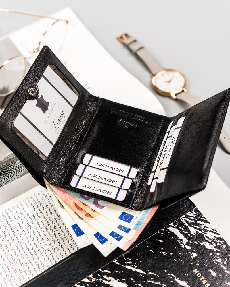 Šis elegantais Lorenti maks ir lieliska izvēle sievietēm, kuras novērtē stilu un funkcionalitāti. Melnā krāsa nodrošina daudzpusību, bet vidējais izmērs – ērtības ikdienas lietošanā. Makā ir pietiekami daudz vietas kartēm un monētām, padarot to ideāli piemērotu gan ikdienas lietošanai, gan īpašiem gadījumiem.