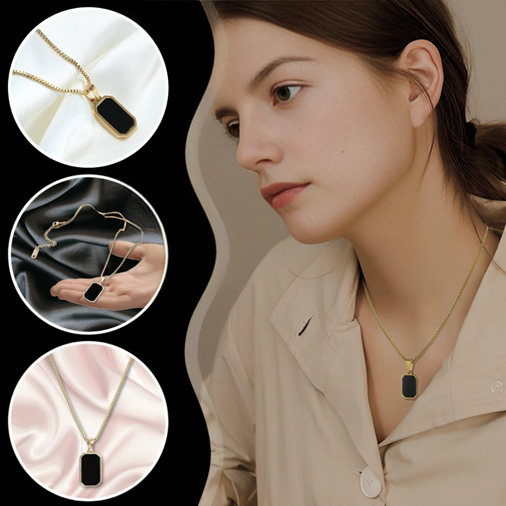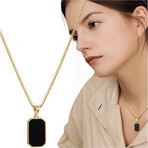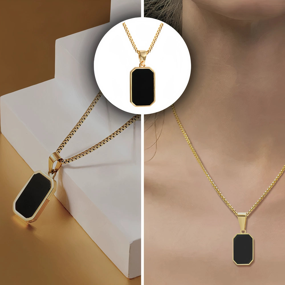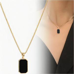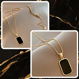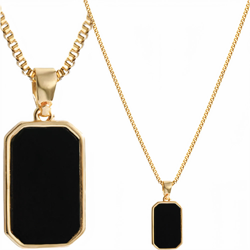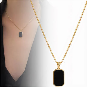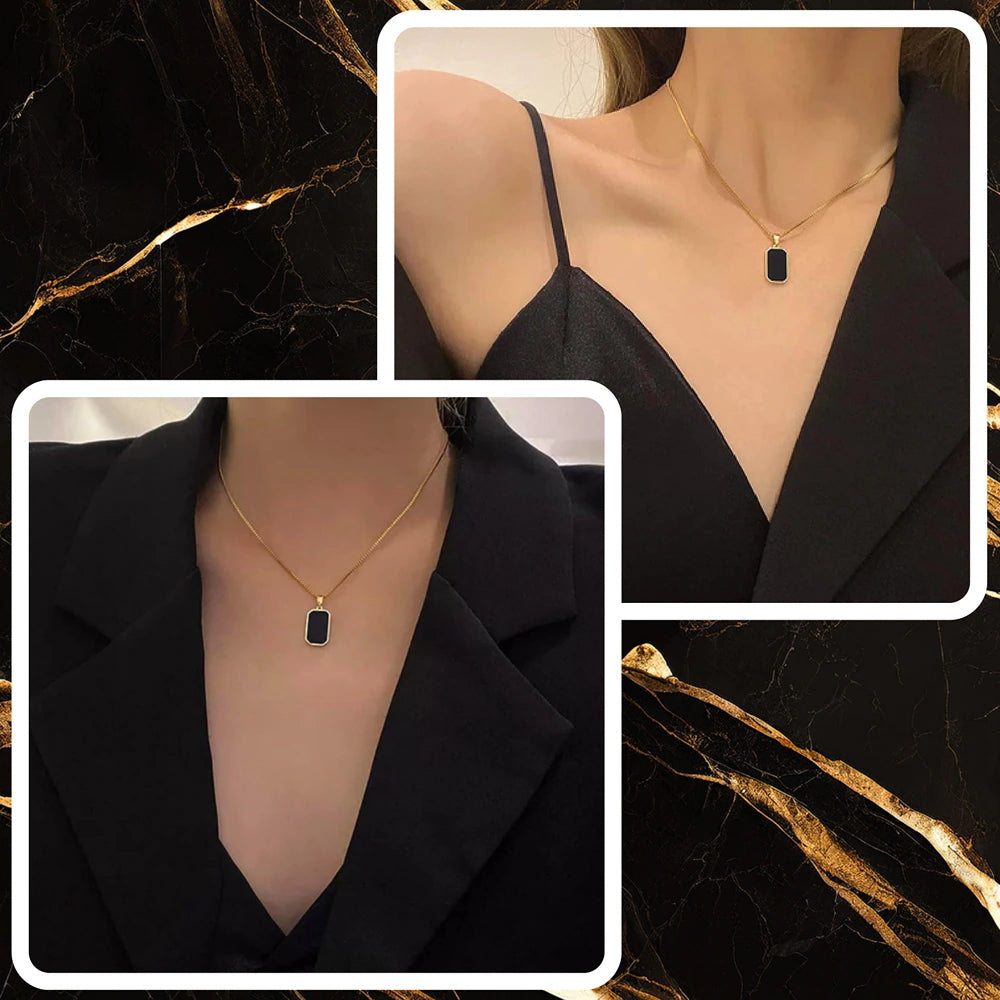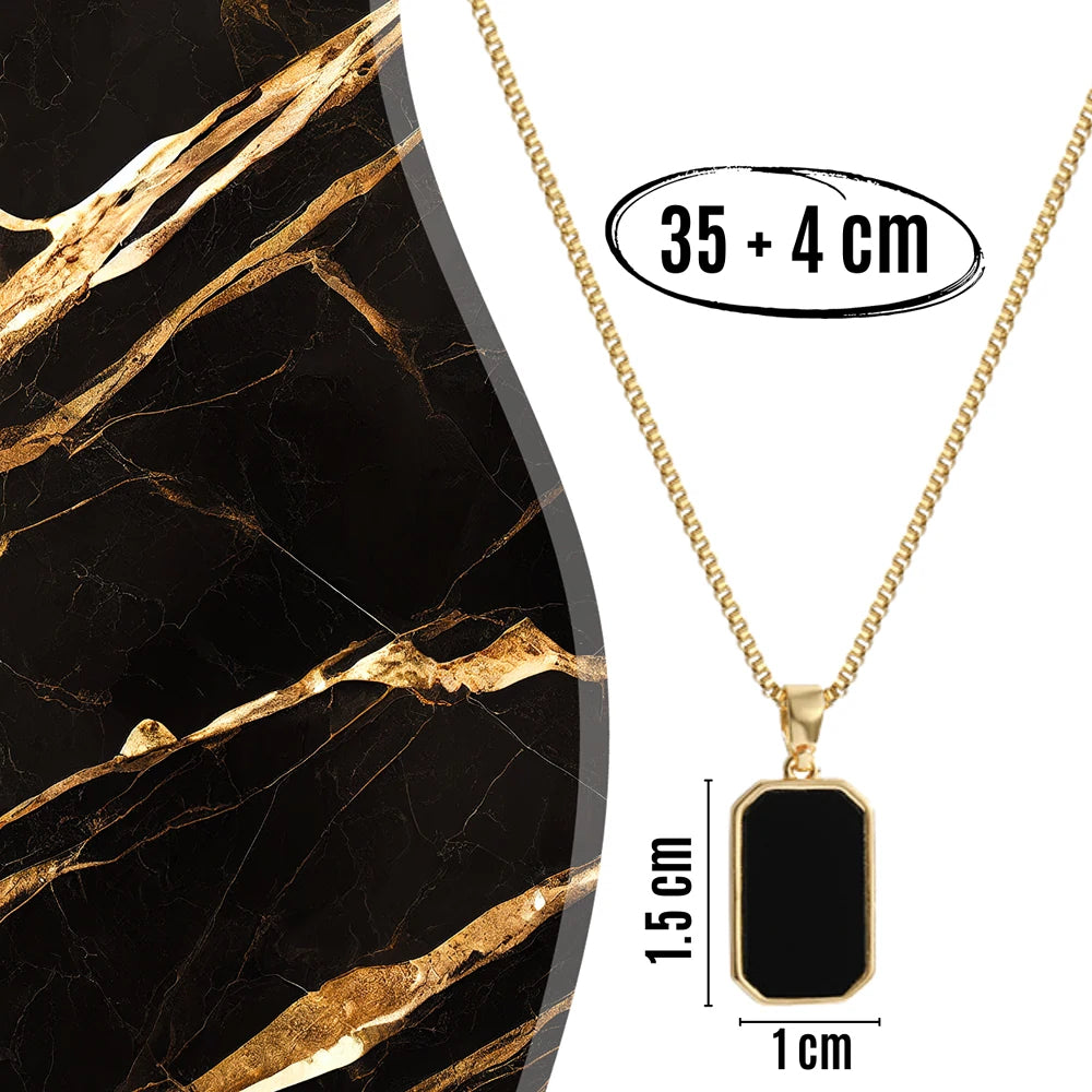 Eleganta ķēdīte, kas izgatavota no 316L ķirurģiskā tērauda, ​​pārklāta ar 18K zeltu. Antialerģiska rotaslieta, kas lieliski piemērota gan elegantam, gan ikdienas tērpam. Melnā plāksnīte piešķir modernu akcentu.