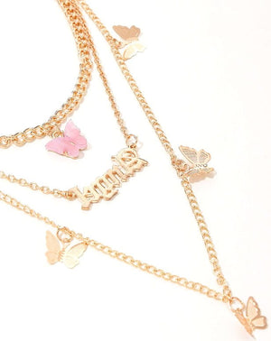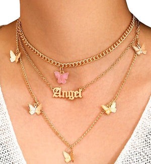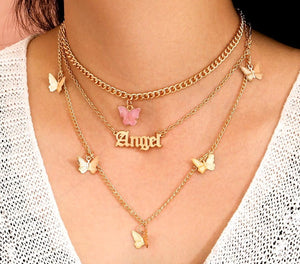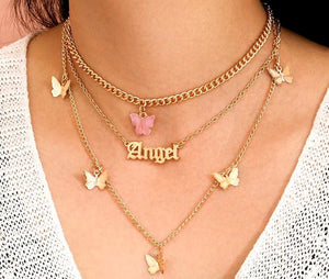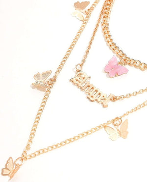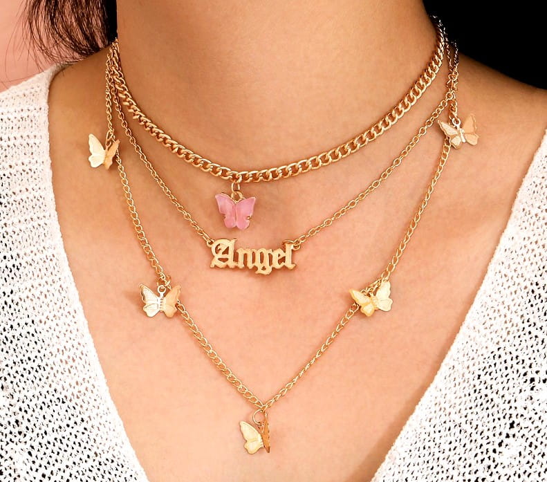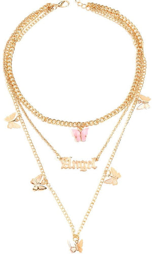 Smalka zelta krāsas kaklarota ar tauriņa motīvu. Izgatavota no rotaslietas metāla, ar omāra aizdari.