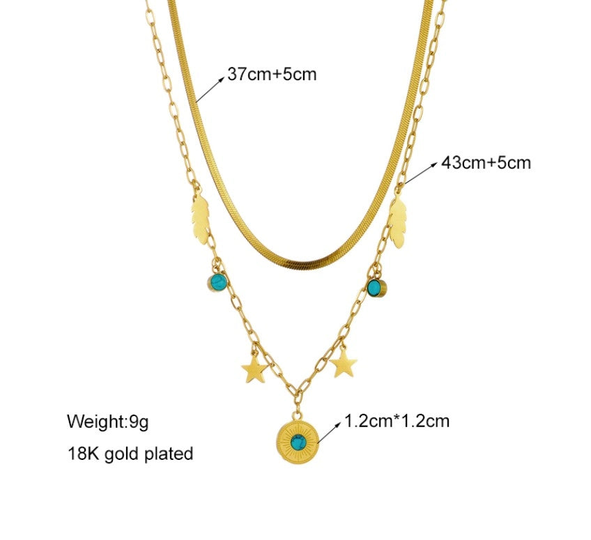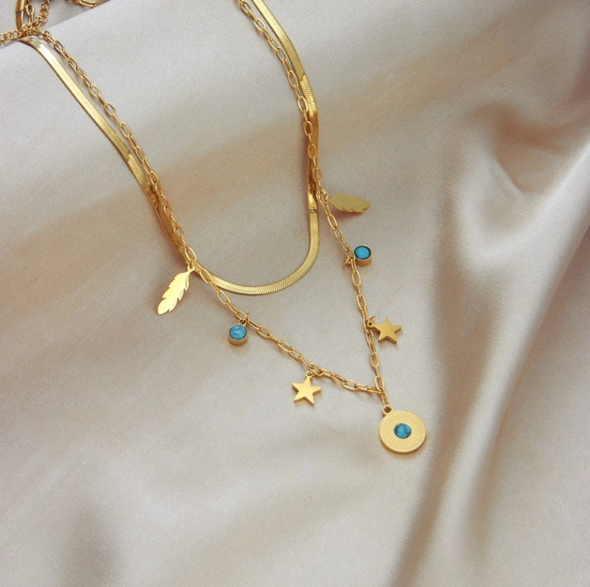 Zelta dubultā kaklarota ar kuloniem, ķirurģiskais tērauds