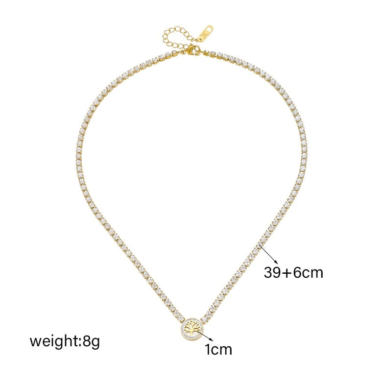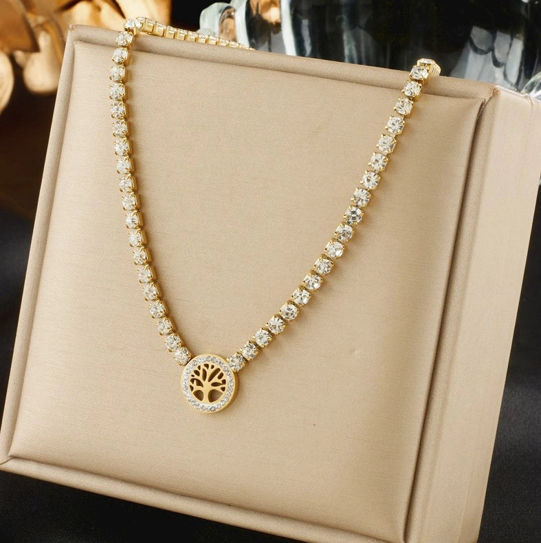 Kulons ar koku simbolizē drošību, veselību un laimi. To ieskauj mazi cirkoni, kas piešķir tam īpašu spīdumu. Rotaslieta ir aizdarīta ar omāra aizdari.