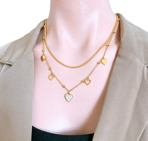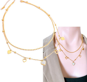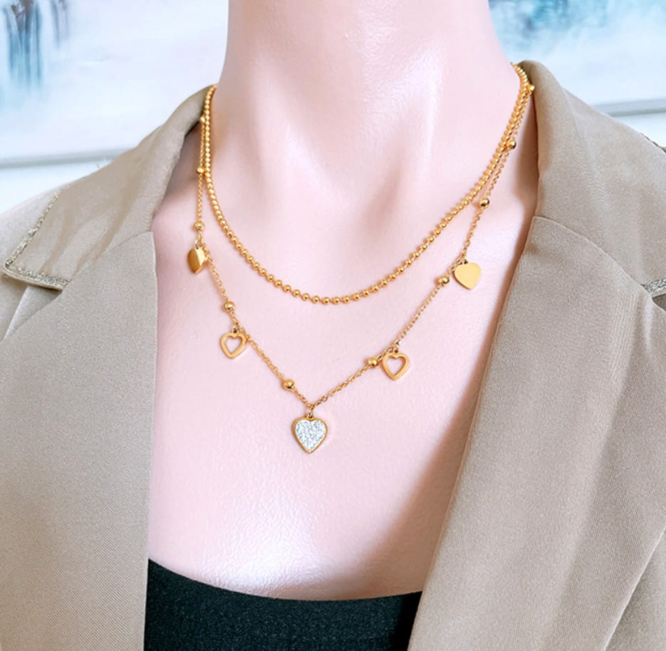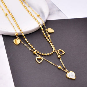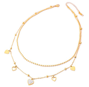 Apzeltīta tērauda kaklarota ar sirds formas kulonu un cirkoniem