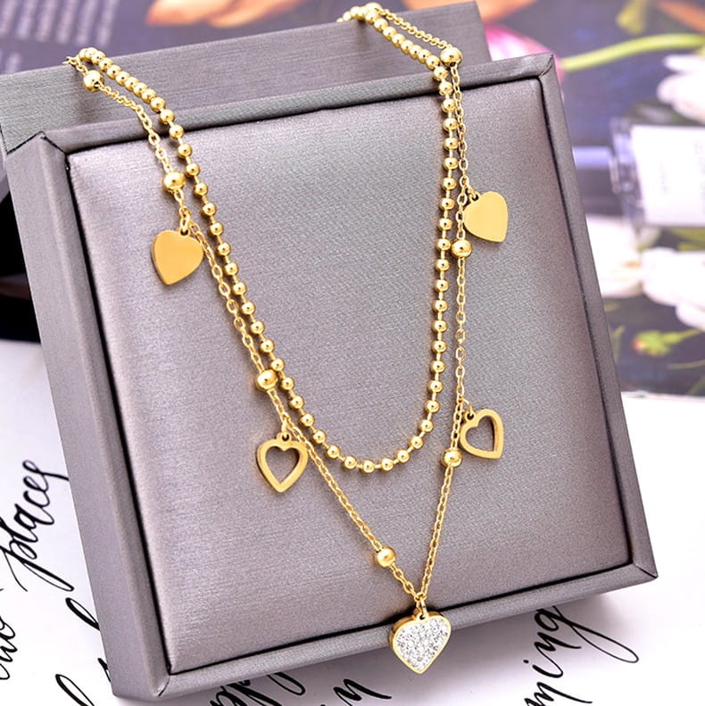 Apzeltīta tērauda kaklarota ar sirds formas kulonu