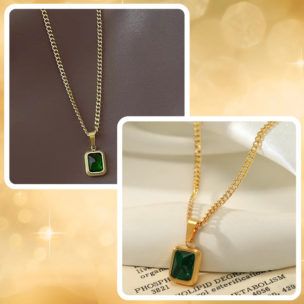 Eleganta zelta kaklarota ar zaļiem cirkoniem