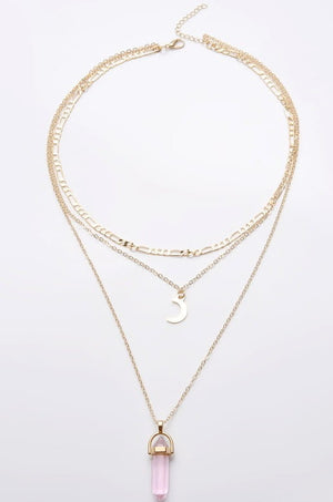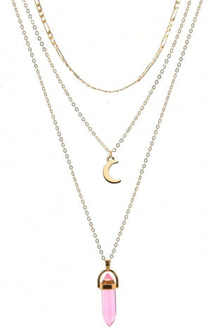 Šī garā kaklarota ar zelta mēnesi un neona rozā lodi ir lielisks aksesuārs dažādiem stiliem. Izgatavota no augstas kvalitātes metāla, kas ir izturīgs pret izbalēšanu, šī rotaslieta ir dzeltenā, spīdīgi zelta krāsā. Kaklarota sastāv no trim ķēdītēm: divām no tām ir kuba pinums, bet trešajai - Figaro pinums. Rotaslieta ir ideāli piemērota gan svētku, gan ikdienas un elegantiem tērpiem.