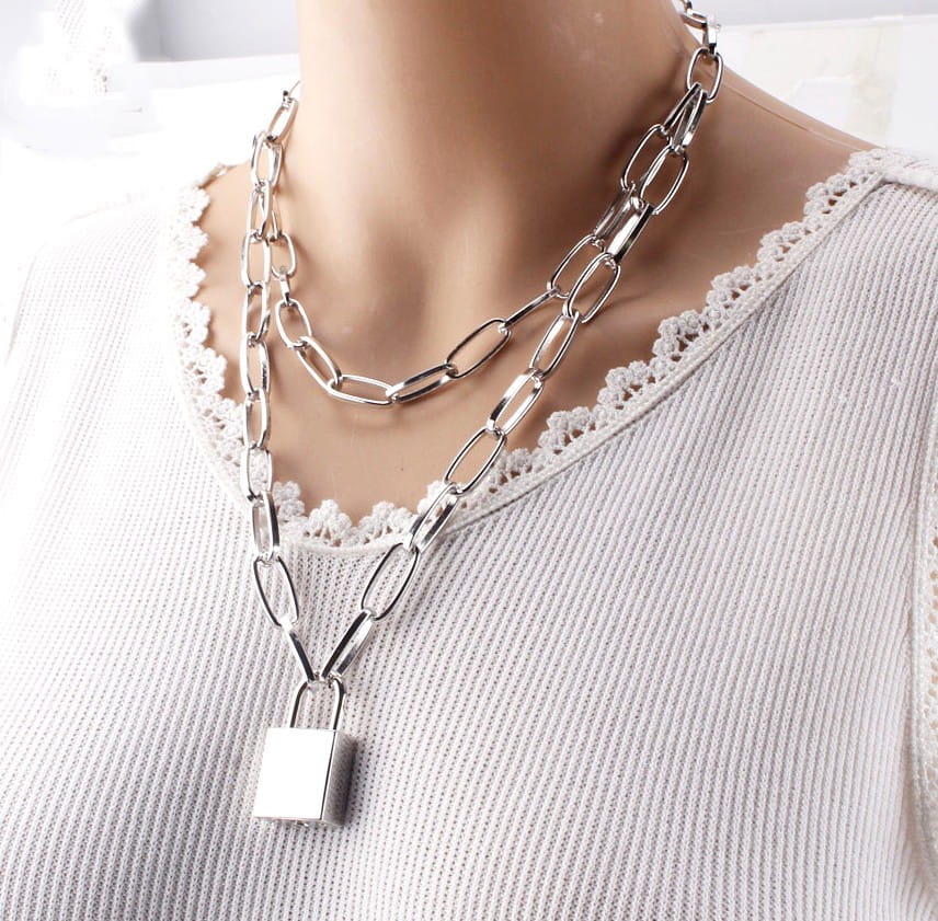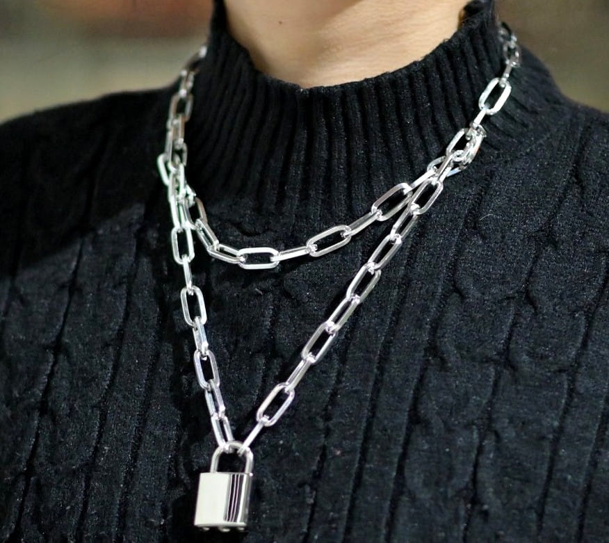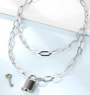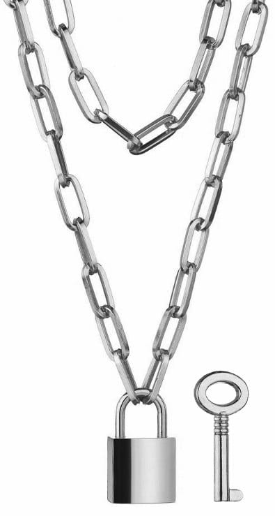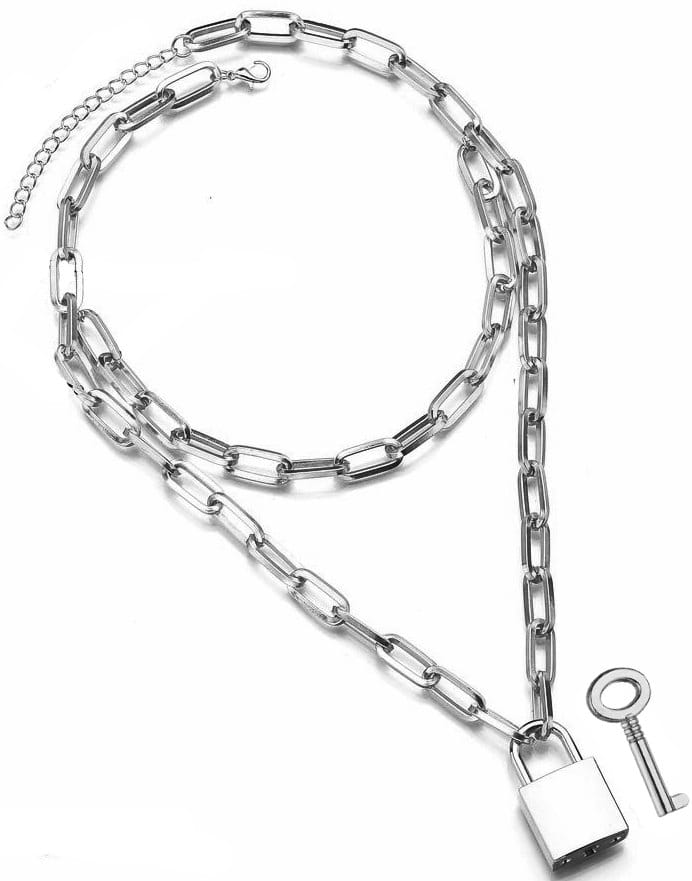 Gara sudraba kaklarota ar slēdzeni un atslēgu