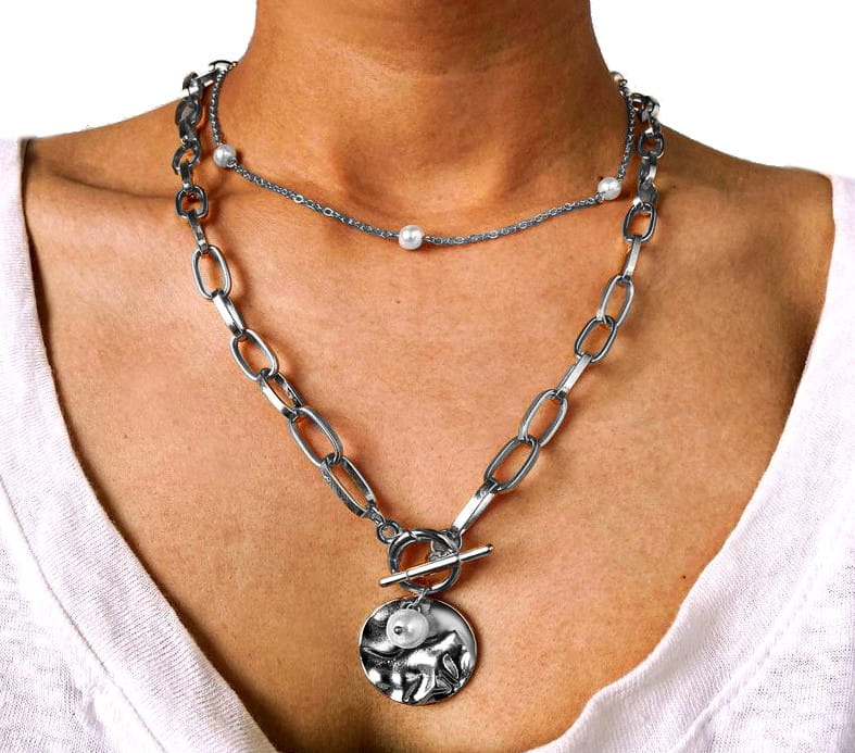 Šī kaklarota neatstās vienaldzīgu nevienu. Tā izskatās grezna un ir lieliski piemērota elegantiem gadījumiem. Neskatoties uz masīvo izskatu, kaklarota ir viegla un ērta valkāšanai ilgu laiku. Zelta vai sudraba krāsas rotājumi ar pērlēm izskatās iespaidīgi, tāpēc tā ir piemērotāka īpašiem gadījumiem, nevis ikdienas valkāšanai. Izgatavota no niķeli nesaturoša metāla, tāpēc piemērota jutīgiem cilvēkiem. Kaklarotas garums ir aptuveni 36 cm, ar 6 cm pagarinājumu. Aizdare ar omāra aizdari, kuru ir viegli aiztaisīt pašai. Tā ir paredzēta drosmīgām sievietēm, kurām patīk uzmanība. Tā labi sader ar klasisku "mazu melnu kleitu" vai seksīgiem kombinezoniem.