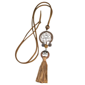 Brūna boho stila kaklarota ar sapņu ķērāju un pušķīšiem
