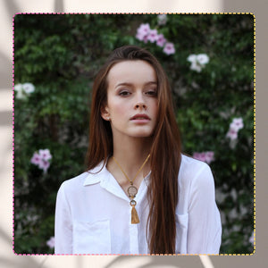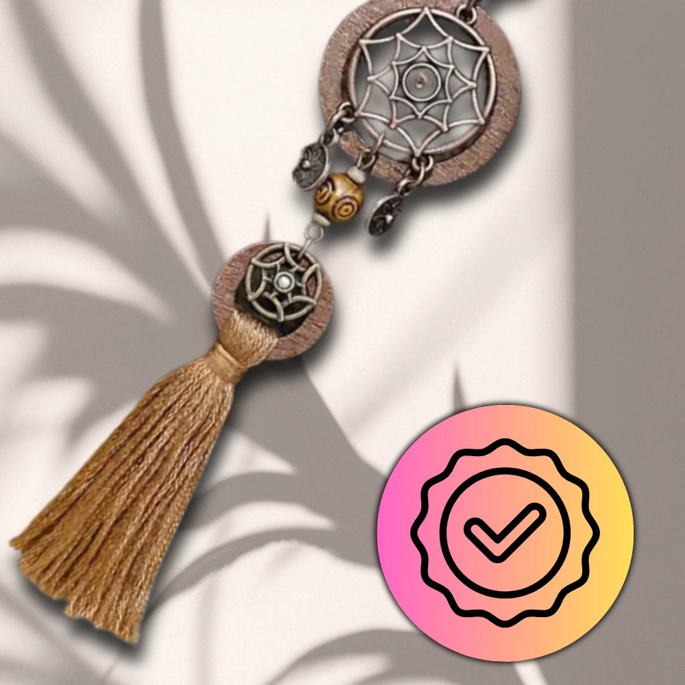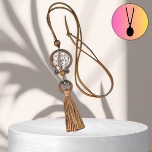 Atklājiet unikālu brūnu boho kaklarotu ar sapņu ķērāju, kas apvieno dabisko stilu un simboliku. Šī kaklarota ir daļa no modernas rotaslietu kolekcijas, kas iedvesmota no dabas un boho kultūras, un ir ideāli piemērota gan ikdienai, gan elegantai stilizācijai.