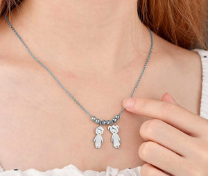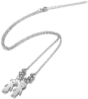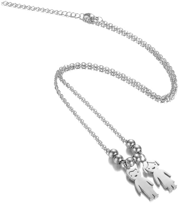 Kaklarotai ir omāra aizdare, tā ir izturīga pret koroziju, nerūsēs un nezaudēs savu formu. Šī sudraba kaklarota bērniem ir mūsu interneta veikala piedāvājums. Tā ir izgatavota no augstas kvalitātes ķirurģiskā tērauda un tai ir iespaidīgi dubultie kuloni un smalkas sudraba pērlītes. Kaklarota ir dekorēta ar ažūra kuloniem ar smaidošas meitenes un zēna attēliem.