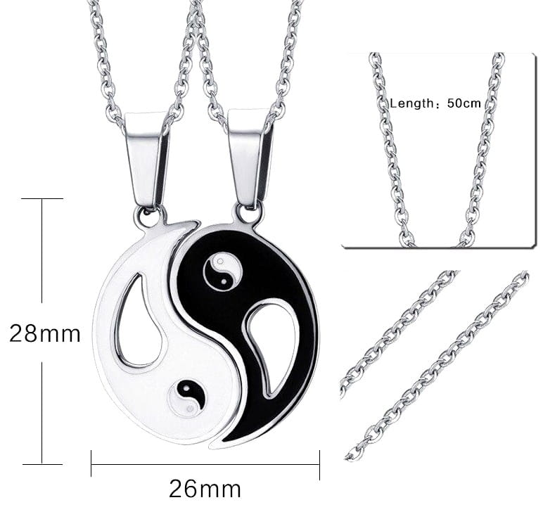 Šī elegantā draudzības kaklarota ir izgatavota no augstas kvalitātes 316L nerūsējošā tērauda, kas pārklāts ar īpašu pārklājumu. Kulona dizainu iedvesmojusi Jiņ un Jaņ simbolika, kas simbolizē harmoniju un līdzsvaru.