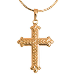 Šis elegantais krusta kulons ir izgatavots no ķirurģiskā tērauda, kas pārklāts ar 24 karātu zeltu. Tas ir ne tikai izturīgs, bet arī estētiski pievilcīgs, lieliski piemērots gan ikdienas valkāšanai, gan īpašiem gadījumiem.