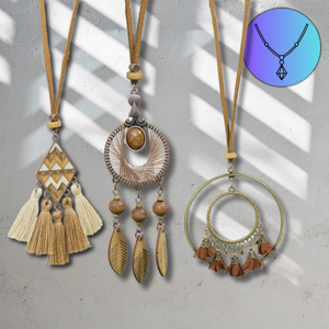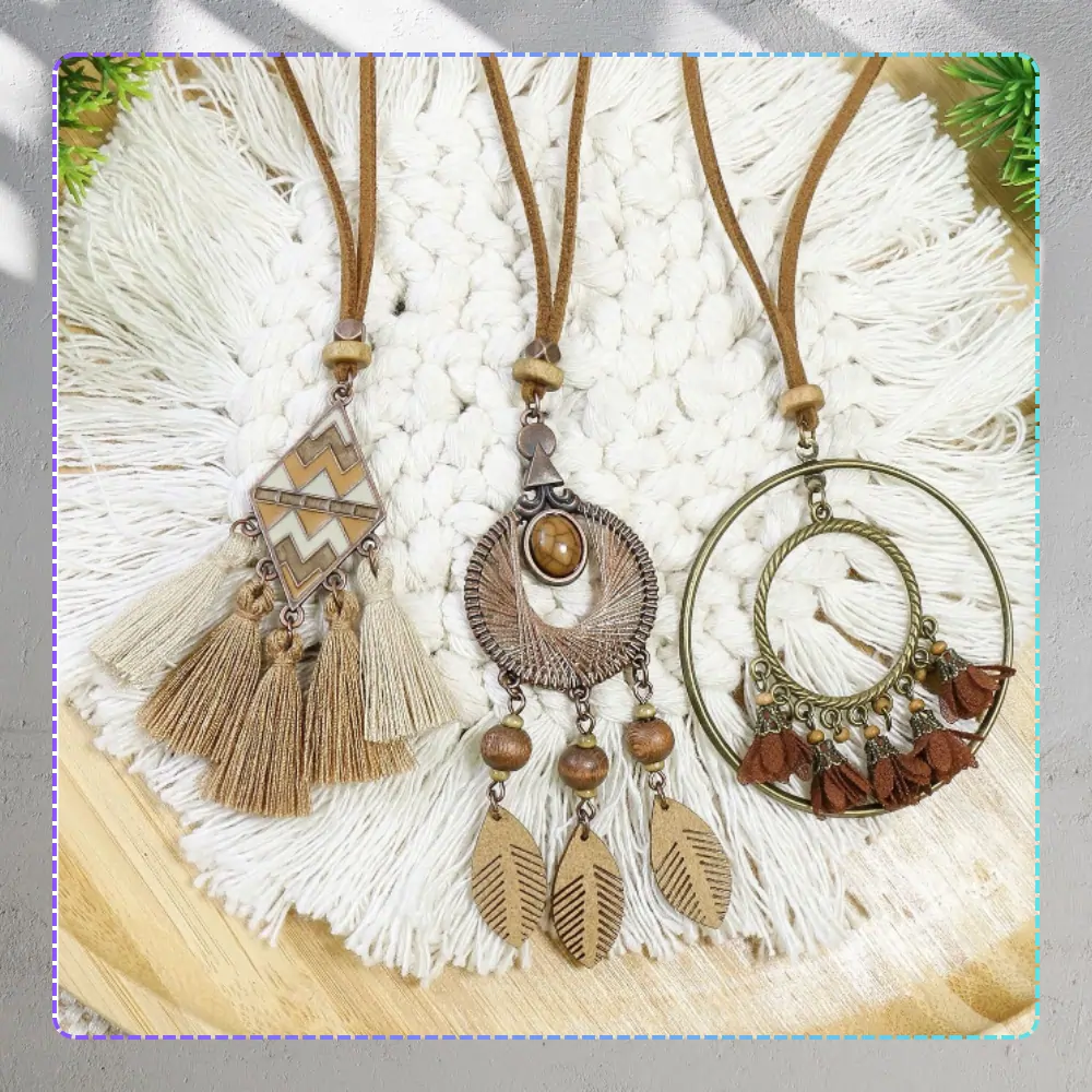 Šis trīs daļu kaklarotu komplekts, kas iedvesmots no boho stila, ir lieliska izvēle gan ikdienai, gan īpašam tēlam. Kolekcija ir veidota, ņemot vērā mūsdienu modes tendences, tāpēc tā labi sader ar dažādiem apģērba stiliem.