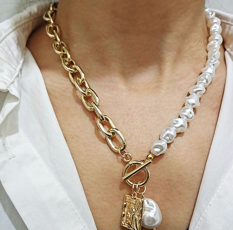- Materiāli: Izgatavots no augstas kvalitātes pērlēm un eleganta kulona.